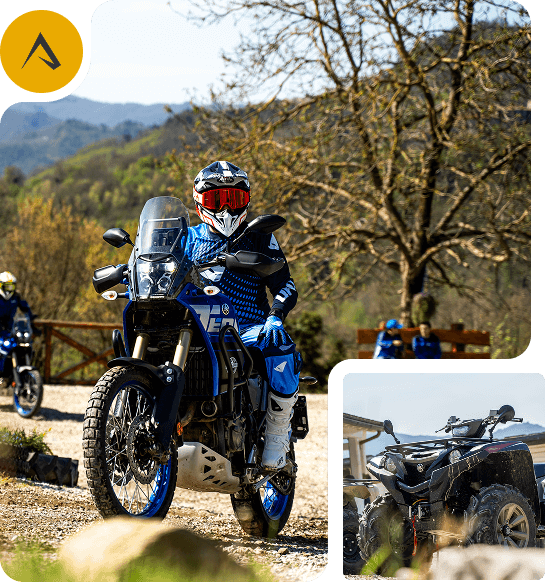 Quad e motociclette Yamaha su percorsi selezionati, guidati da professionisti certificati.