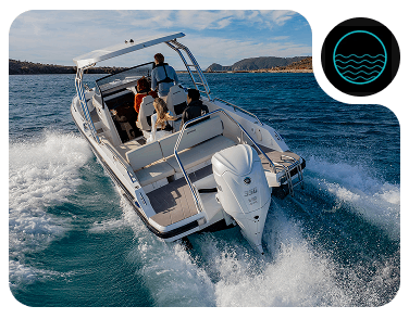 Attività in mare con imbarcazioni motorizzate Yamaha, curate nei minimi dettagli.